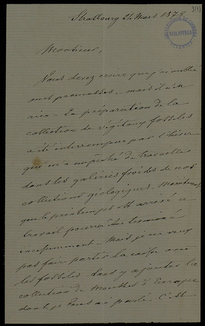 [Lettre], 1878 mars 24, Strasbourgue, [à Júlio Henriques, Coimbra]