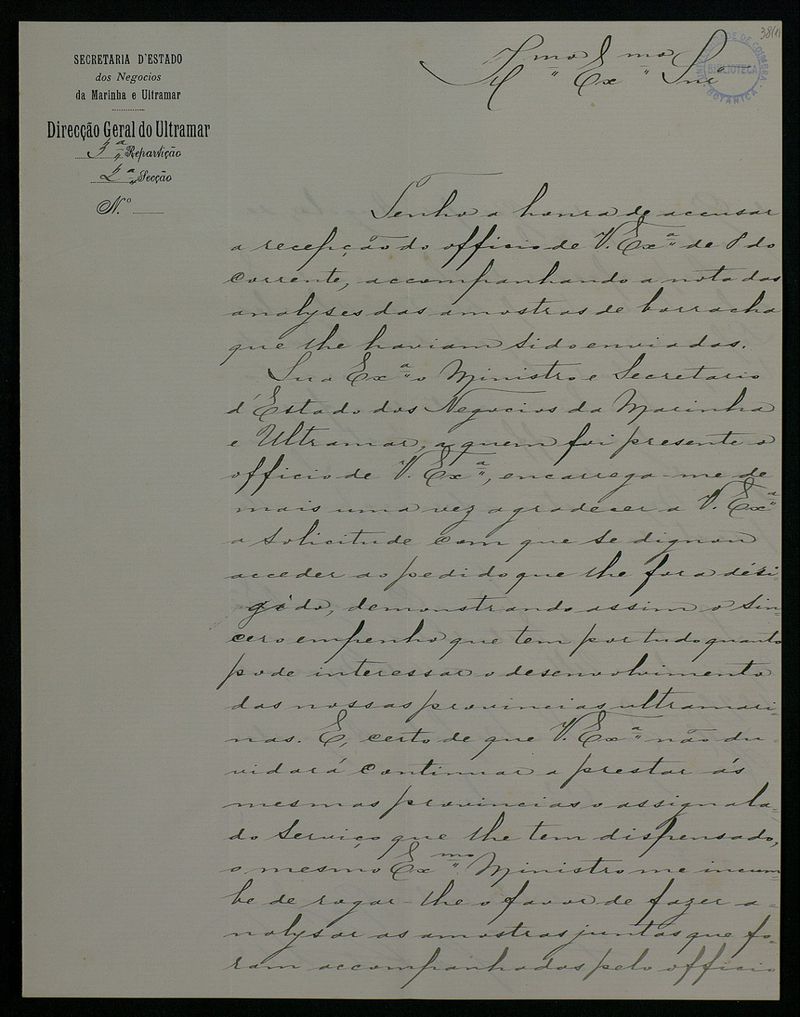 Papel timbrado de: Secretaria d' Estado dos Negocios da Marinha e Ultramar - Direcção Geral do Ultramar.