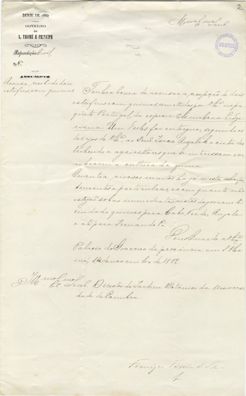 [Carta], 1882 Nov. 14, S. Thomé, [a Júlio Henriques, Coimbra] Francisco Teixeira da Silva