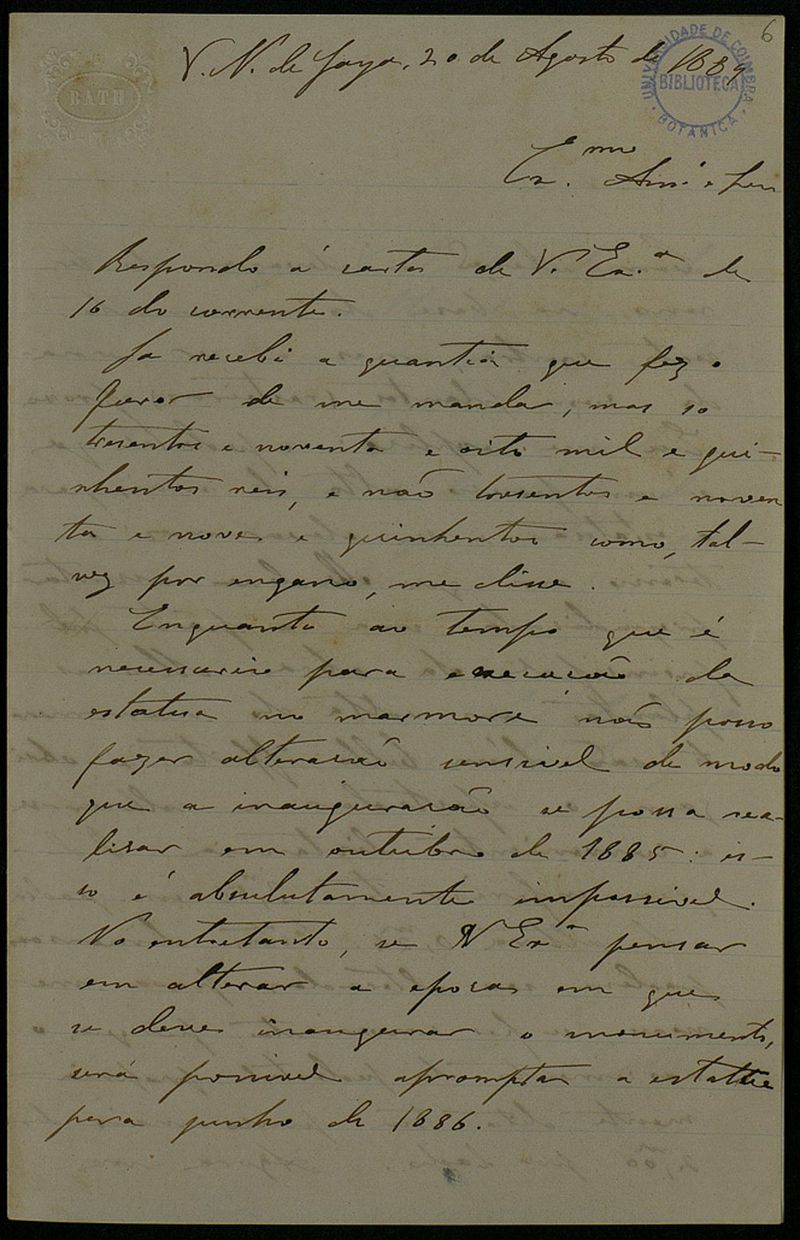 [Carta], 1884 Ago. 20, V. N. de Gaya, [a Júlio Henriques], Coimbra