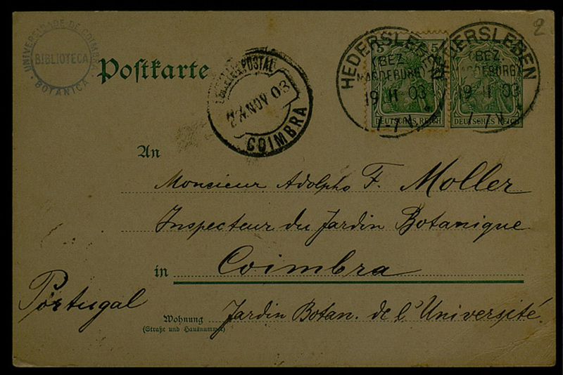 Postkarte, 1903 Nov. 18, Hedersleben, an Monsieur Adolpho F. Moller, Coimbra