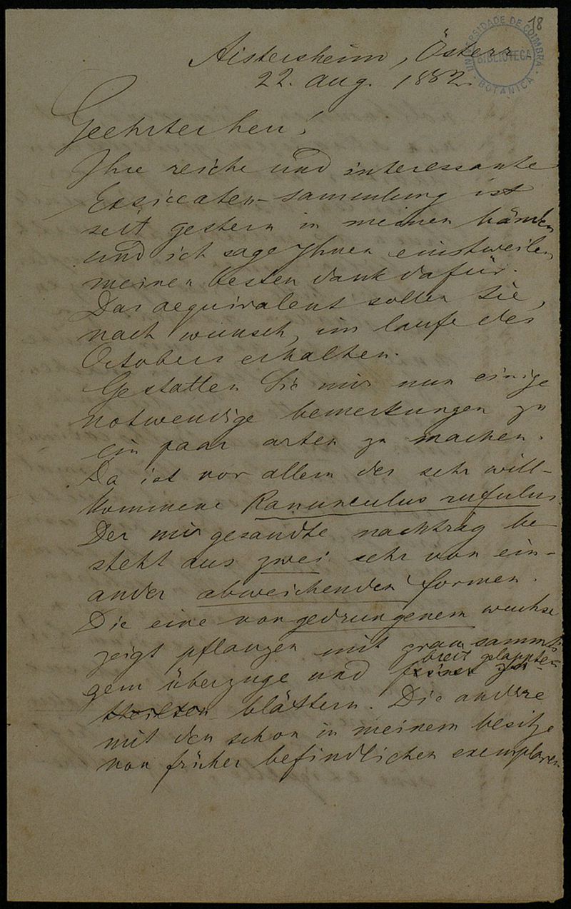 [Brief], 1882 Aug. 22, Aistersheim, [an] Herr[n Adolfo F. Möller, Coimbra]