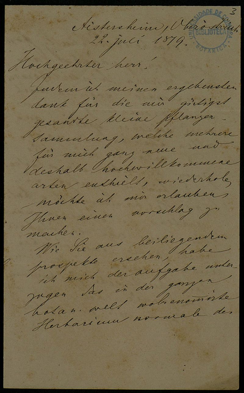 [Brief], 1879 Juli 22, Aistersheim, [an] Herr[n Adolfo F. Möller, Coimbra]