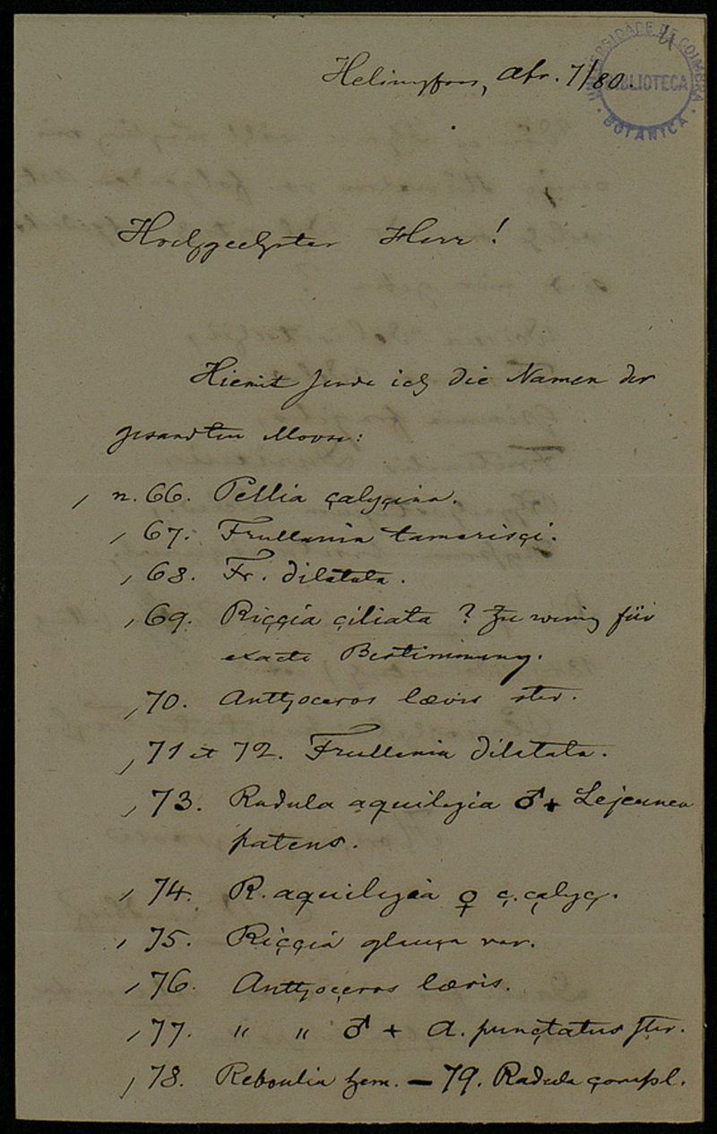 [Brief], 1880 Apr. 7, Helsingfors, [an] Herr[n Adolfo F. Möller, Coimbra]