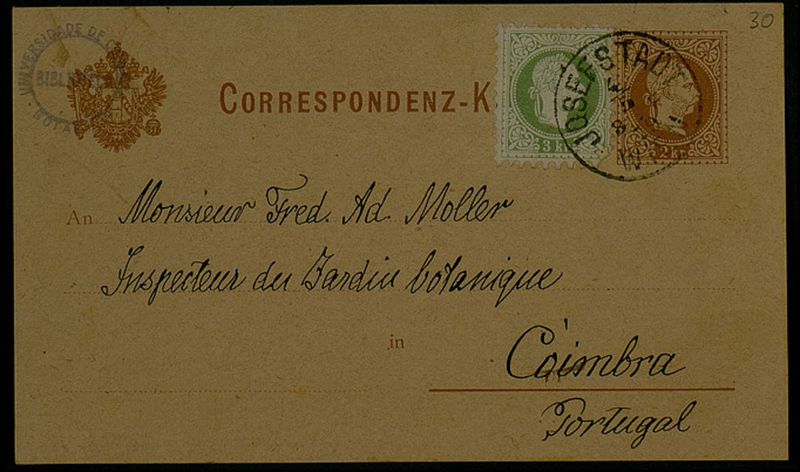 Correspondenz-K[arte], 1879 mai 3, Wien, an Monsieur Fred. Ad. Moller, Coimbra