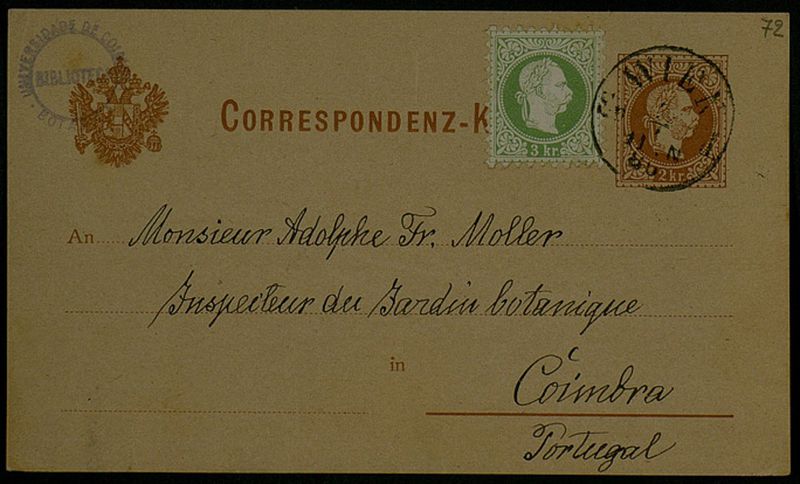 Correspondenz-K[arte], 1880 Feb. 2, Wien, an Monsieur Adolphe Fr. Moller, Coimbra