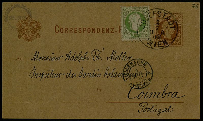 Correspondenz-[Karte], 1880 Juli 1, Wien, an Monsieur Adolphe Fr. Moller, Coimbra