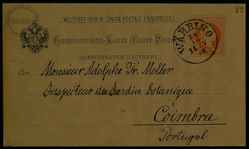 Correspondenz-Karte, 1880 Okt. 23, Wien, an Monsieur Adolphe Fr. Moller, Coimbra