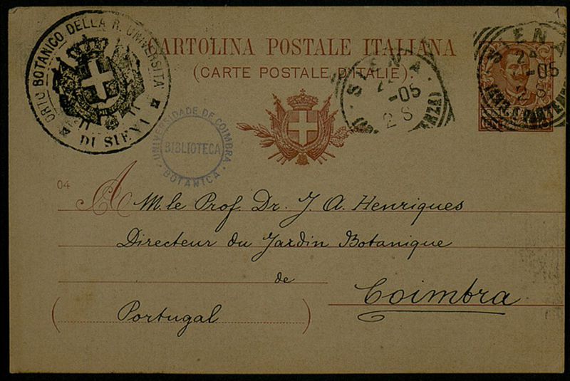 Cartolina Postale Italiana, 1905 lug. 24, Sierra, a M. le Prof. Dr. J. A. Henriques, Coimbra