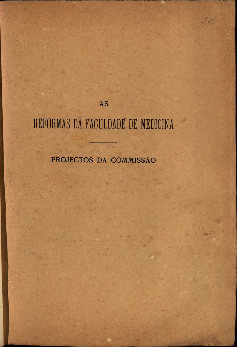 Projectos do relatório e plano de reforma elaborados pela comissão restaurada em Conselho da Faculdade de Medicina de 12 de Maio de 1882, para estudar a reorganização da mesma Faculdade..
