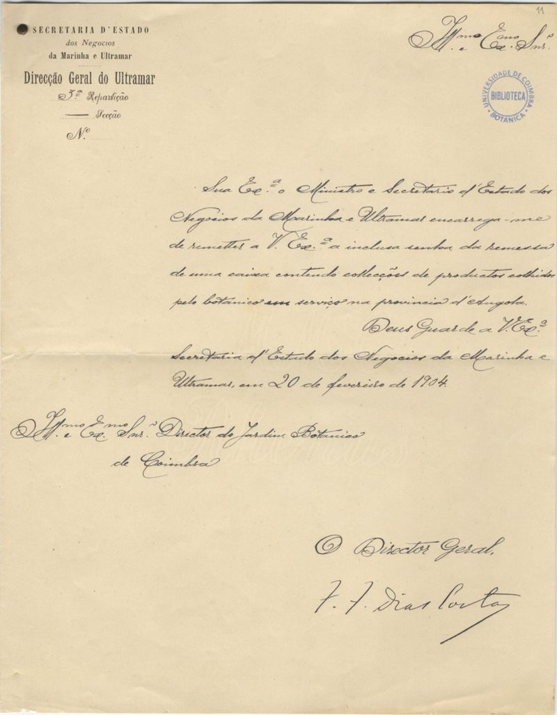 Em papel timbrado de "Secretaria d' Estado dos Negocios da Marinha e Ultramar - Direcção Geral do Ultramar".