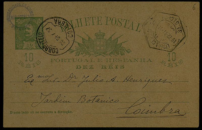 Bilhete postal, 1897 Dez. 18, Lisboa, [a] Dr. Júlio A. Henriques, Coimbra