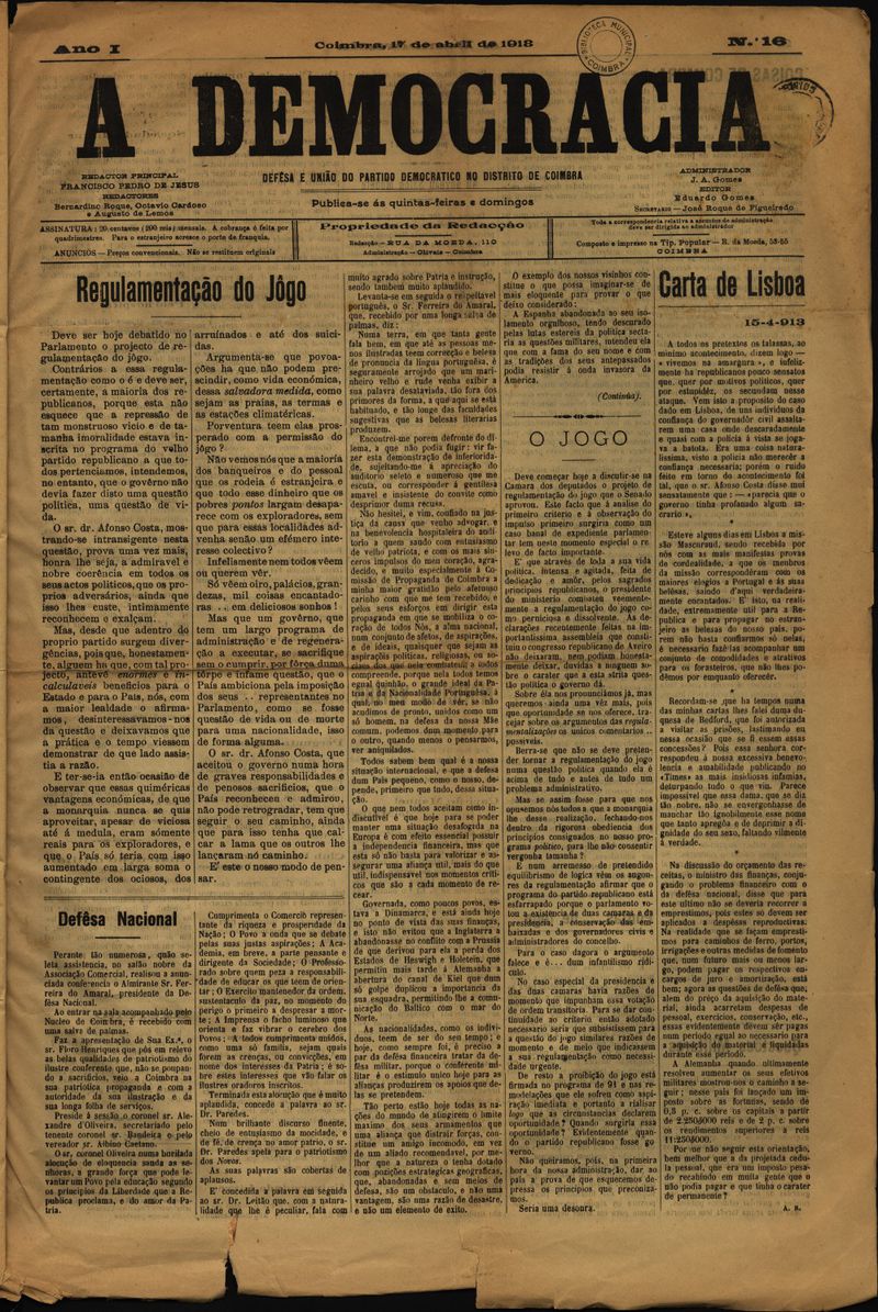 A democracia : defeza e união do Partido Democrático no distrito de Coimbra
