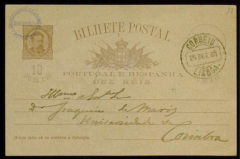 Bilhete Postal, 1888 Dec. 24, [Lisboa, a] Joaquim de Mariz, Coimbra