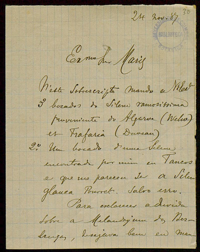 [Carta], 1889 Nov. 24, [Lisboa, a] Mariz, [Coimbra]