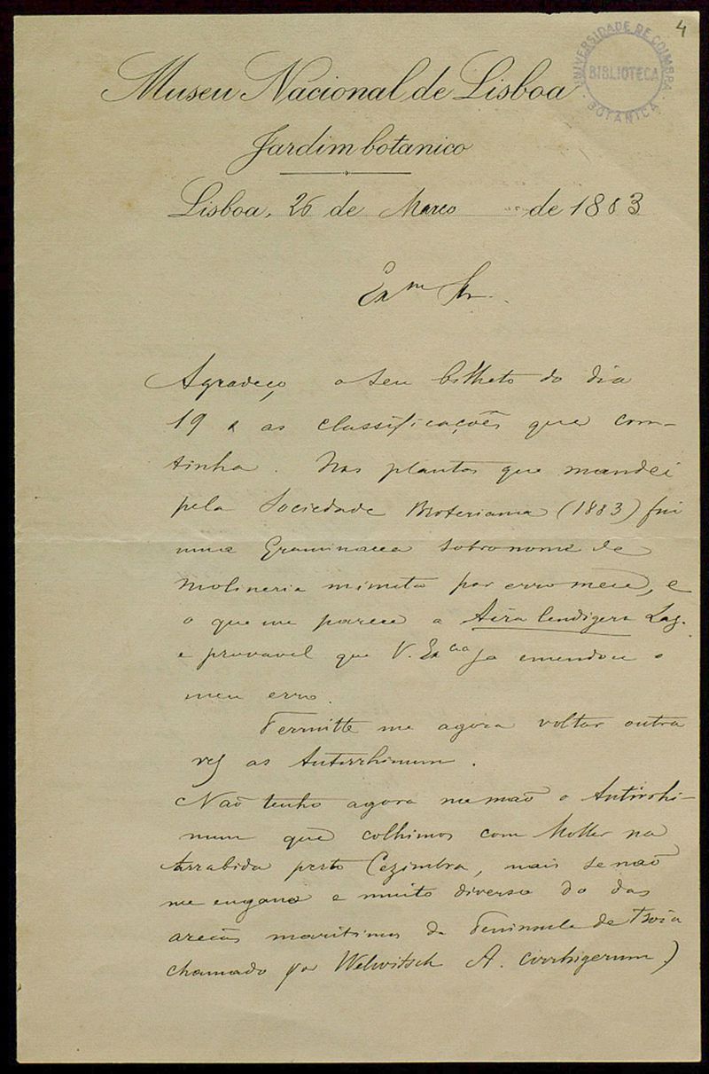 Papel timbrado de: Museu Nacional de Lisboa Jardim Botânico.