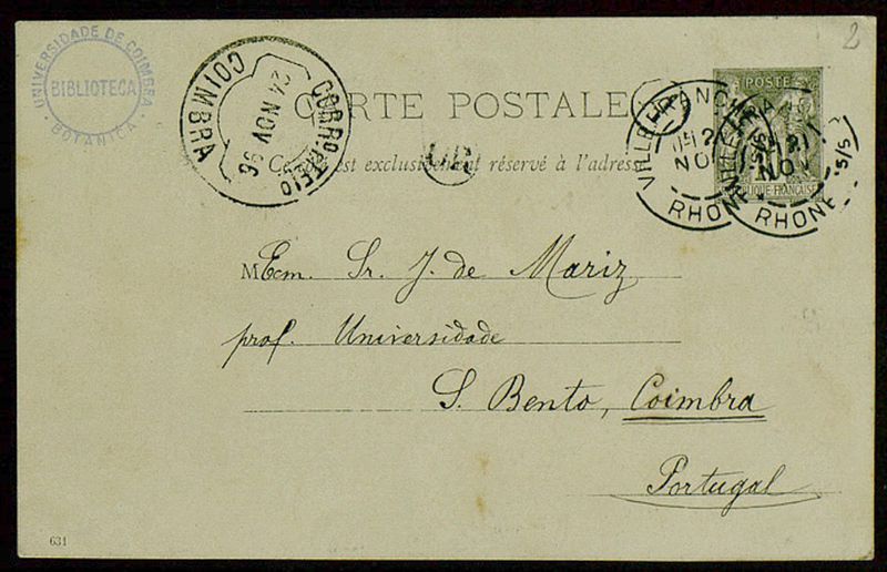 Carte Postale, 1896 nov. 21, Arnas, [à] J. de Mariz, Coimbra
