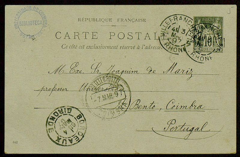 Carte Postale, 1897 mars 2, Arnas, [à] Joaquim de Mariz, Coimbra