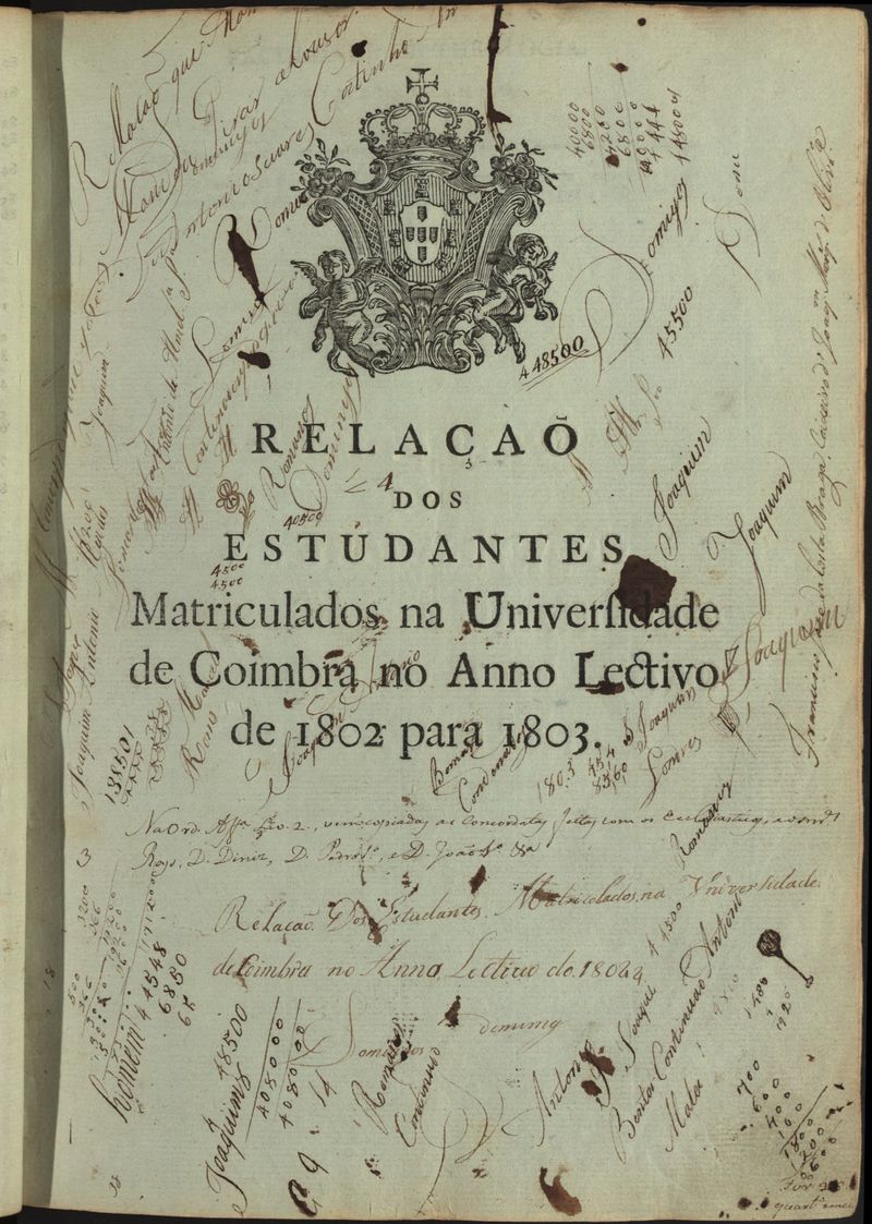Relação e índice alfabético dos estudantes matriculados na Universidade de Coimbra e no Liceu