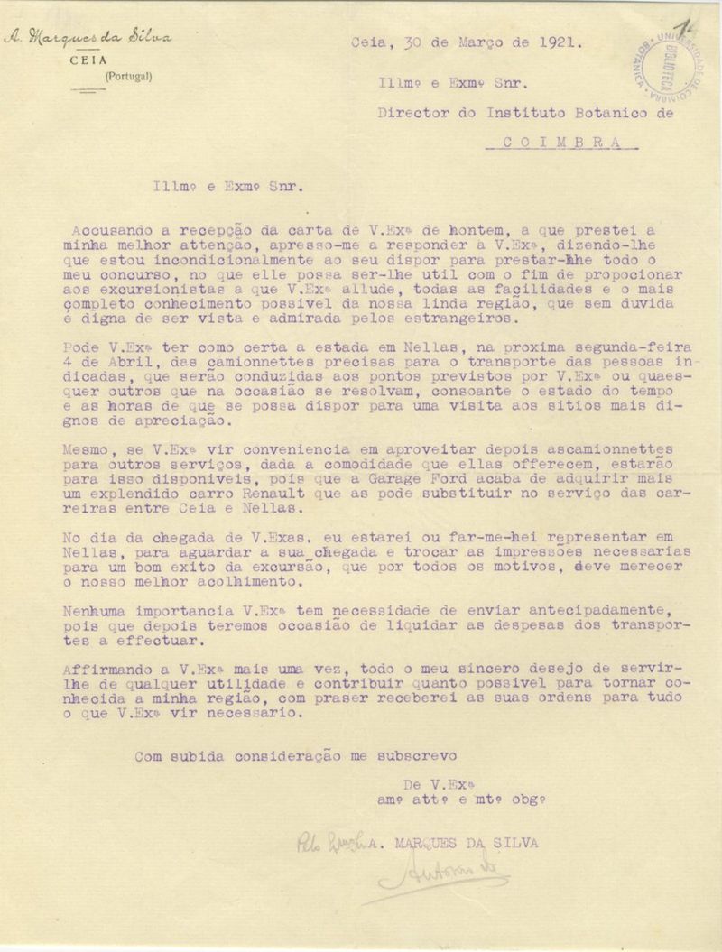 Em papel timbrado de "A. Marques da Silva - Ceia".