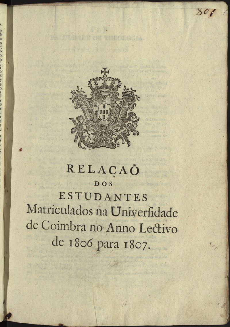 Relação e índice alfabético dos estudantes matriculados na Universidade de Coimbra e no Liceu