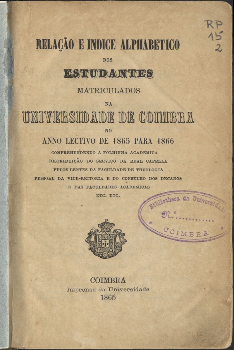 Relação e índice alfabético dos estudantes matriculados na Universidade de Coimbra e no Liceu