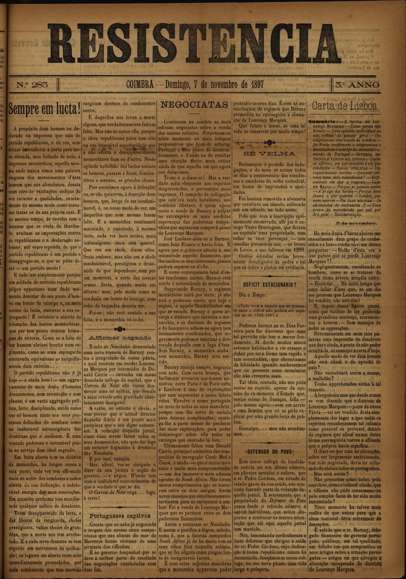 Resistência : orgão do Partido Republicano de Coimbra
