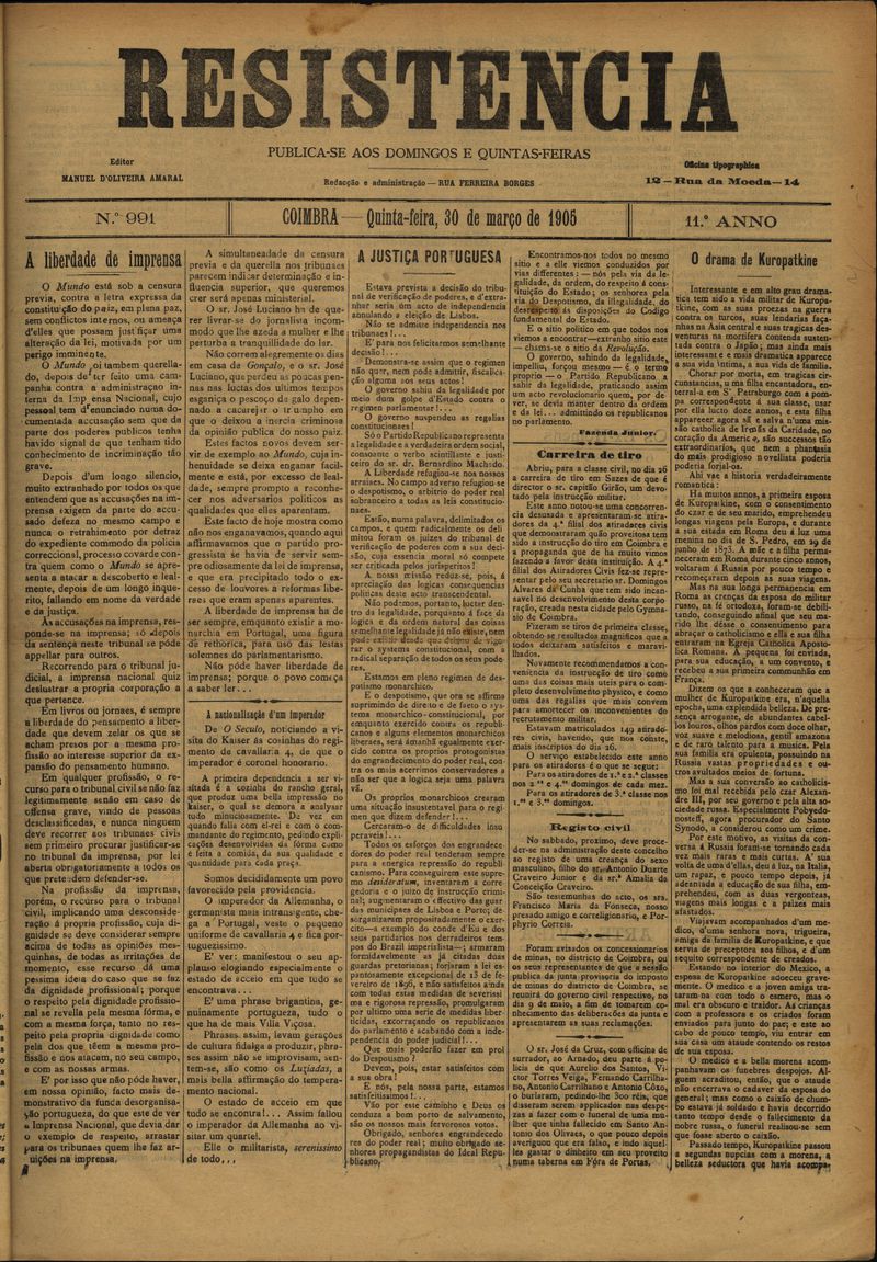 Resistência : orgão do Partido Republicano de Coimbra