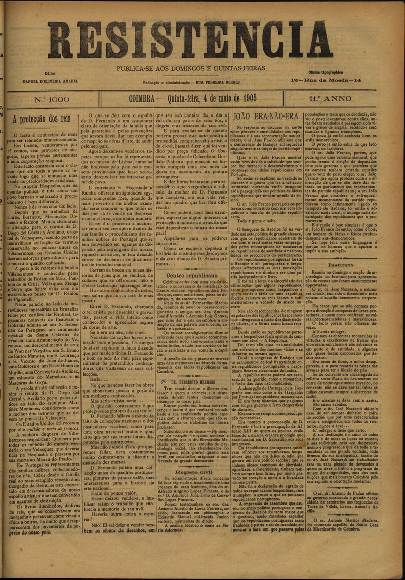 Resistência : orgão do Partido Republicano de Coimbra