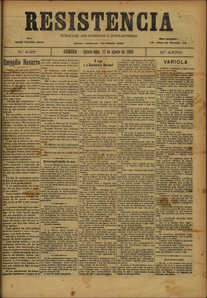 Resistência : orgão do Partido Republicano de Coimbra