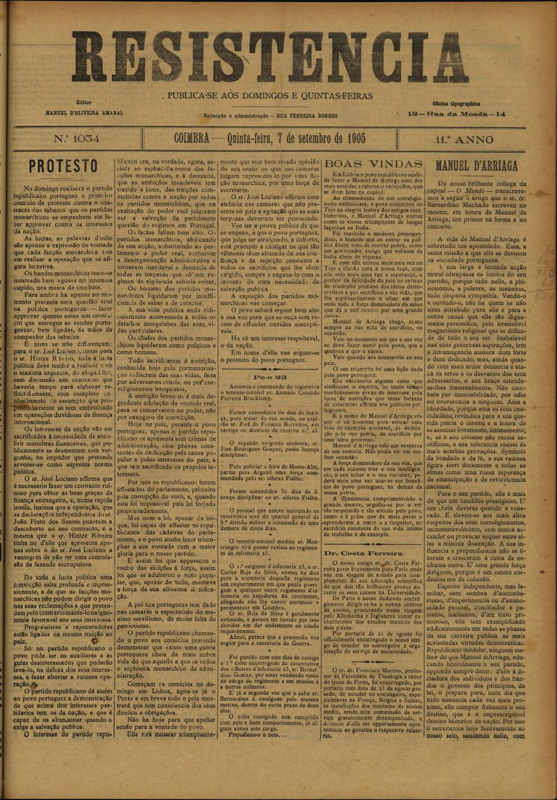 Resistência : orgão do Partido Republicano de Coimbra