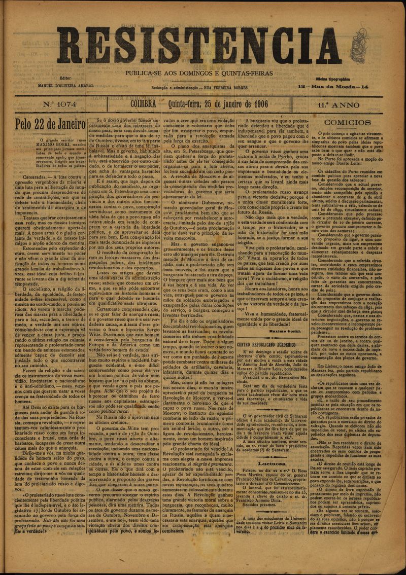 Resistência : orgão do Partido Republicano de Coimbra
