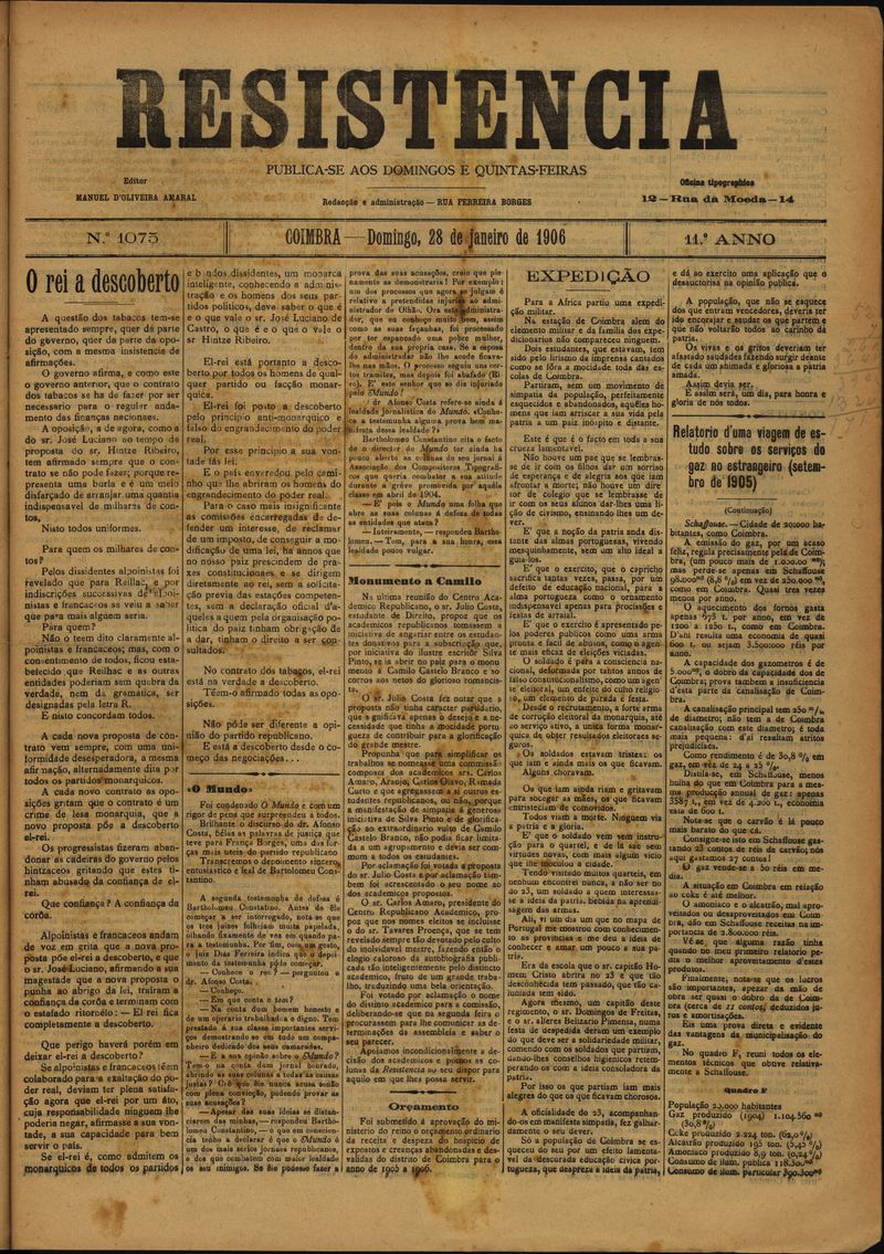 Resistência : orgão do Partido Republicano de Coimbra