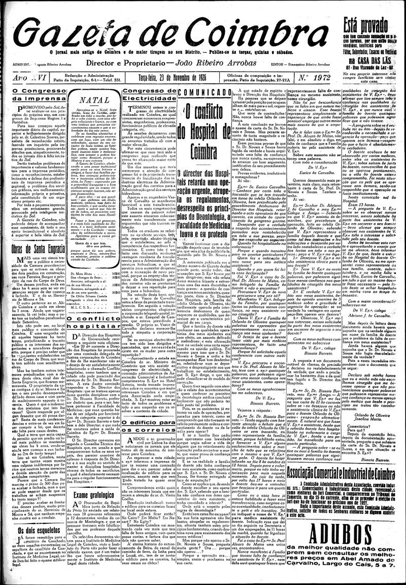 Gazeta de Coimbra 1926, Novembro 23, terça-feira - Nº1972