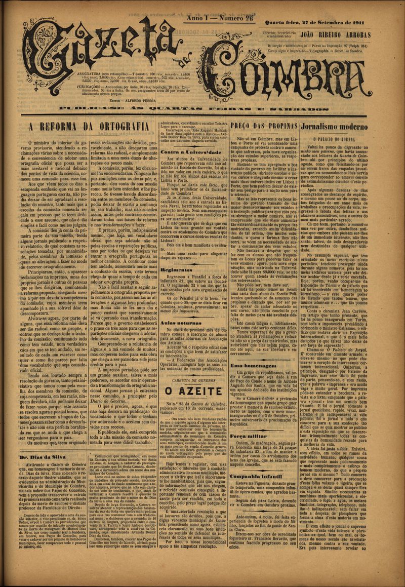 Gazeta de Coimbra 1911, Setembro 27, quarta-feira - Nº26