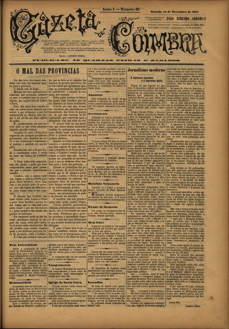 Gazeta de Coimbra 1911, Novembro 11, sábado - Nº39