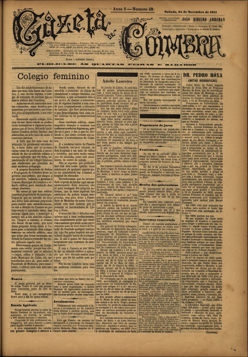 Gazeta de Coimbra 1911, Novembro 25, sábado - Nº43