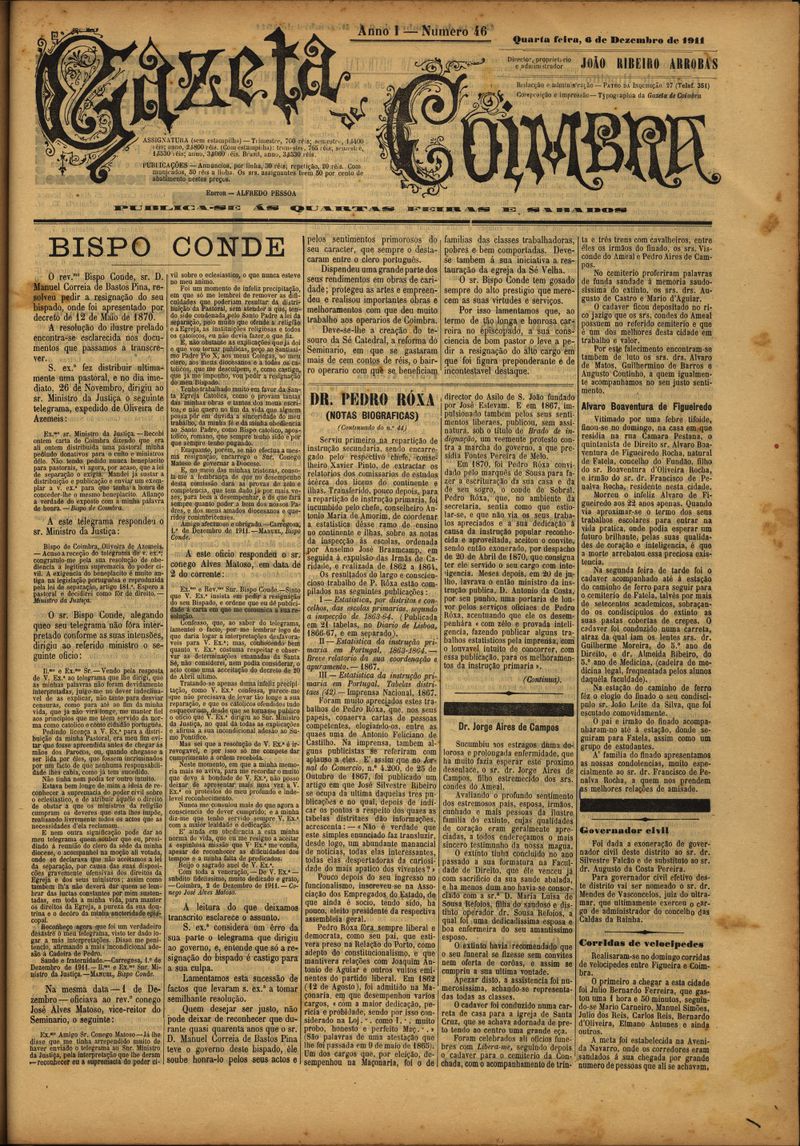 Gazeta de Coimbra 1911, Dezembro 06, quarta-feira - Nº46