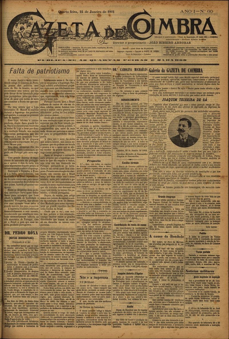 Gazeta de Coimbra 1912, Janeiro 24, quarta-feira - Nº60
