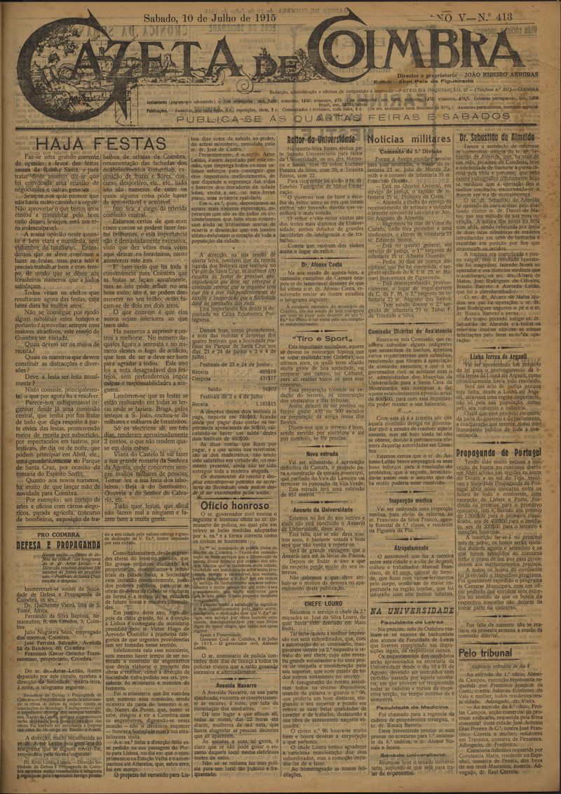 Gazeta de Coimbra 1915, Julho 10, sábado - Nº413