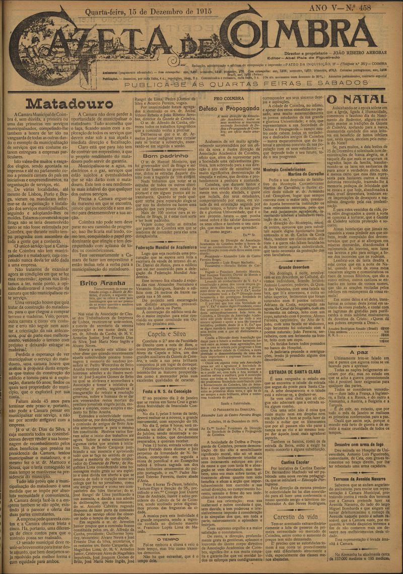 Gazeta de Coimbra 1915, Dezembro 15, quarta-feira - Nº458