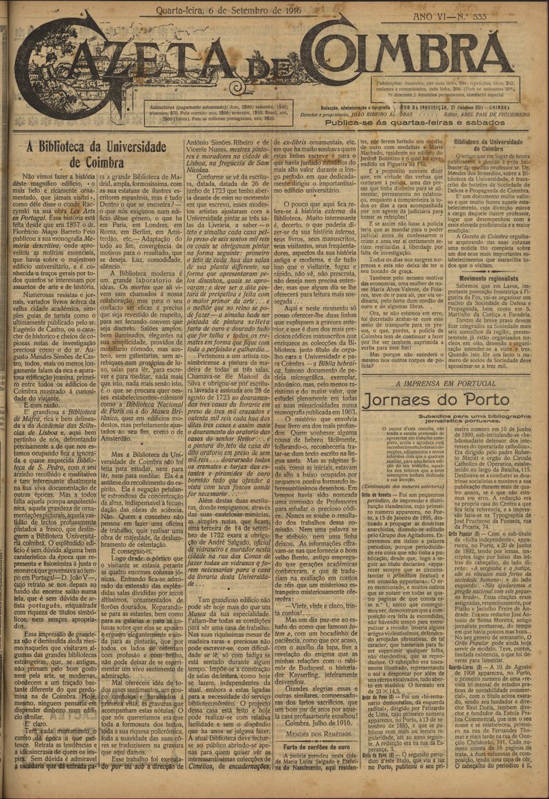 Gazeta de Coimbra 1916, Setembro 06, quarta-feira - Nº533
