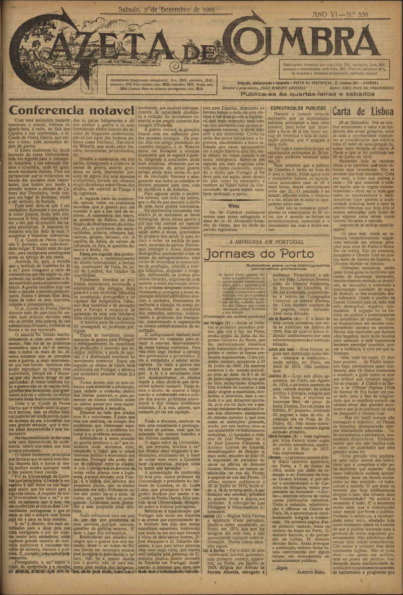 Gazeta de Coimbra 1916, Dezembro 02, sábado - Nº558