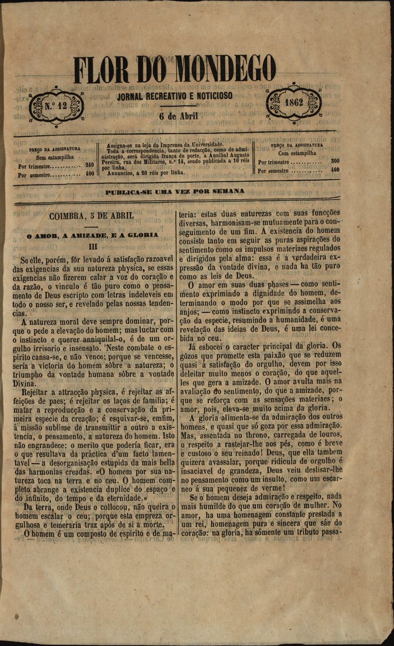 Flor do Mondego : jornal recreativo e noticioso Nº12