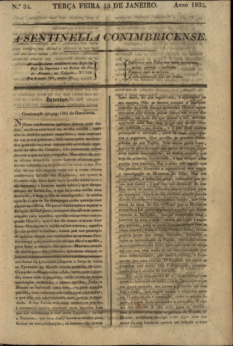 A sentinella conimbricense Nº34