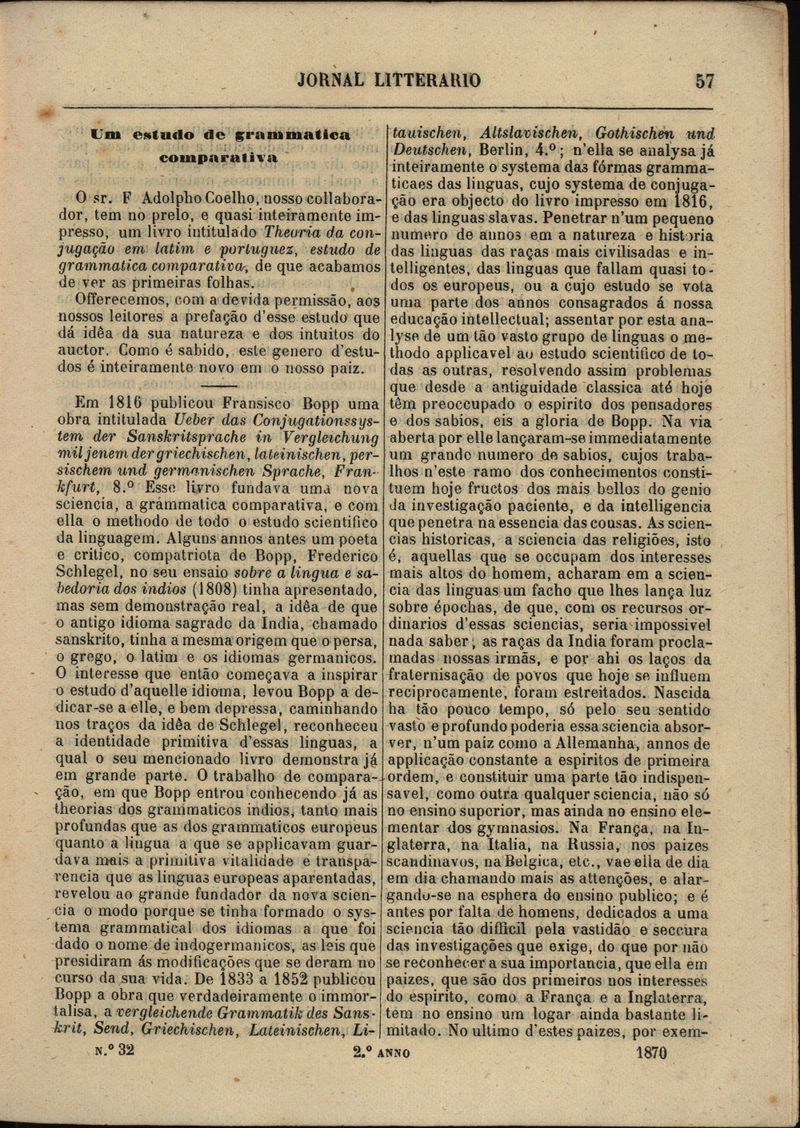 Jornal litterario : periódico quinzenal destinado a artigos de litteratura e sciencias – Nº32