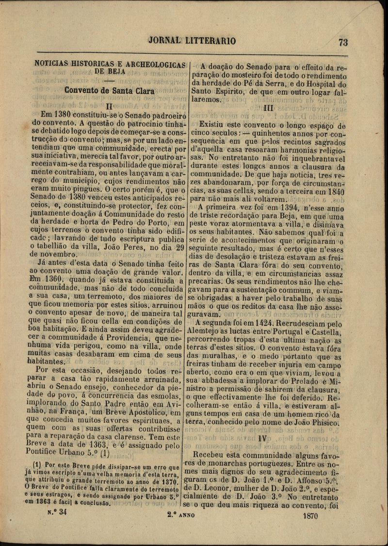 Jornal litterario : periódico quinzenal destinado a artigos de litteratura e sciencias – Nº34