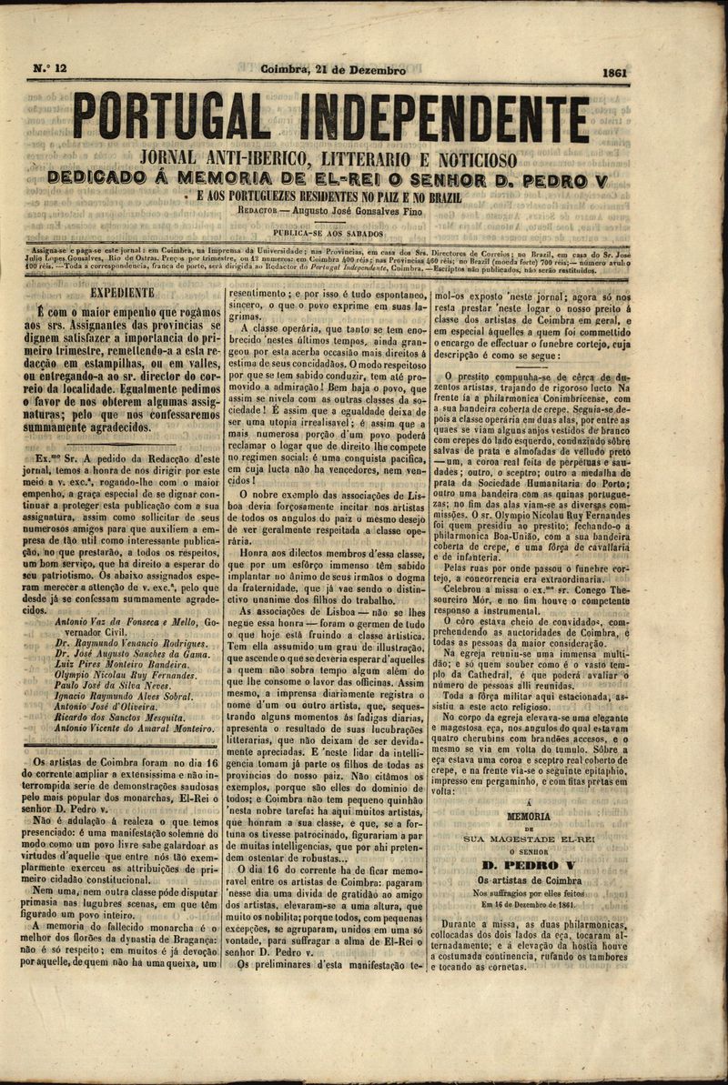 Portugal independente : jornal anti-iberico, litterario e noticioso dedicado a S. M. El-Rei o Sr. D. Pedro V e aos portuguezes residentes no paiz e no Brazil Nº12