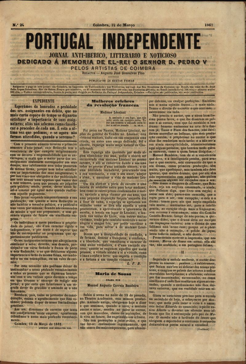 Portugal independente : jornal anti-iberico, litterario e noticioso dedicado a S. M. El-Rei o Sr. D. Pedro V e aos portuguezes residentes no paiz e no Brazil Nº24