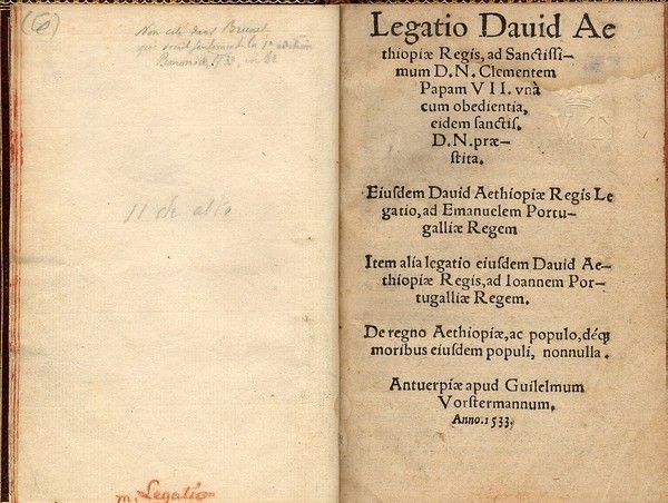 Legatio David Aethiopiae regis, ad sanctissimum D. N. Clementem Papam VII unà cum obedientia, eidem sanctis. D. N. praestita ; Eiusdem David Aethiopiae Regis legatio, ad Emanuelem Portugalliae regem ; Item alia legatio eiusdem David Aethiopiae Regis, ad